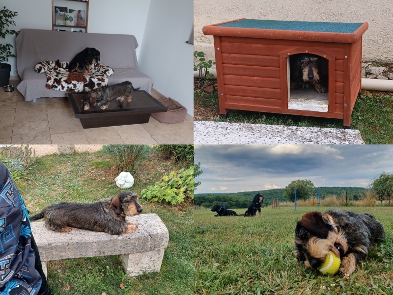 Je pense que l’apprentissage de la propreté va être long, mais il y a quand même de sacrés progrès. Il a l’air de supporter mes absences assez longues quand je suis au travail, mais forcément il y a des petits pipis à mon retour. Quand je reste à la maison, il sort souvent, donc pas de problème, même si quelques tentatives de marquage.