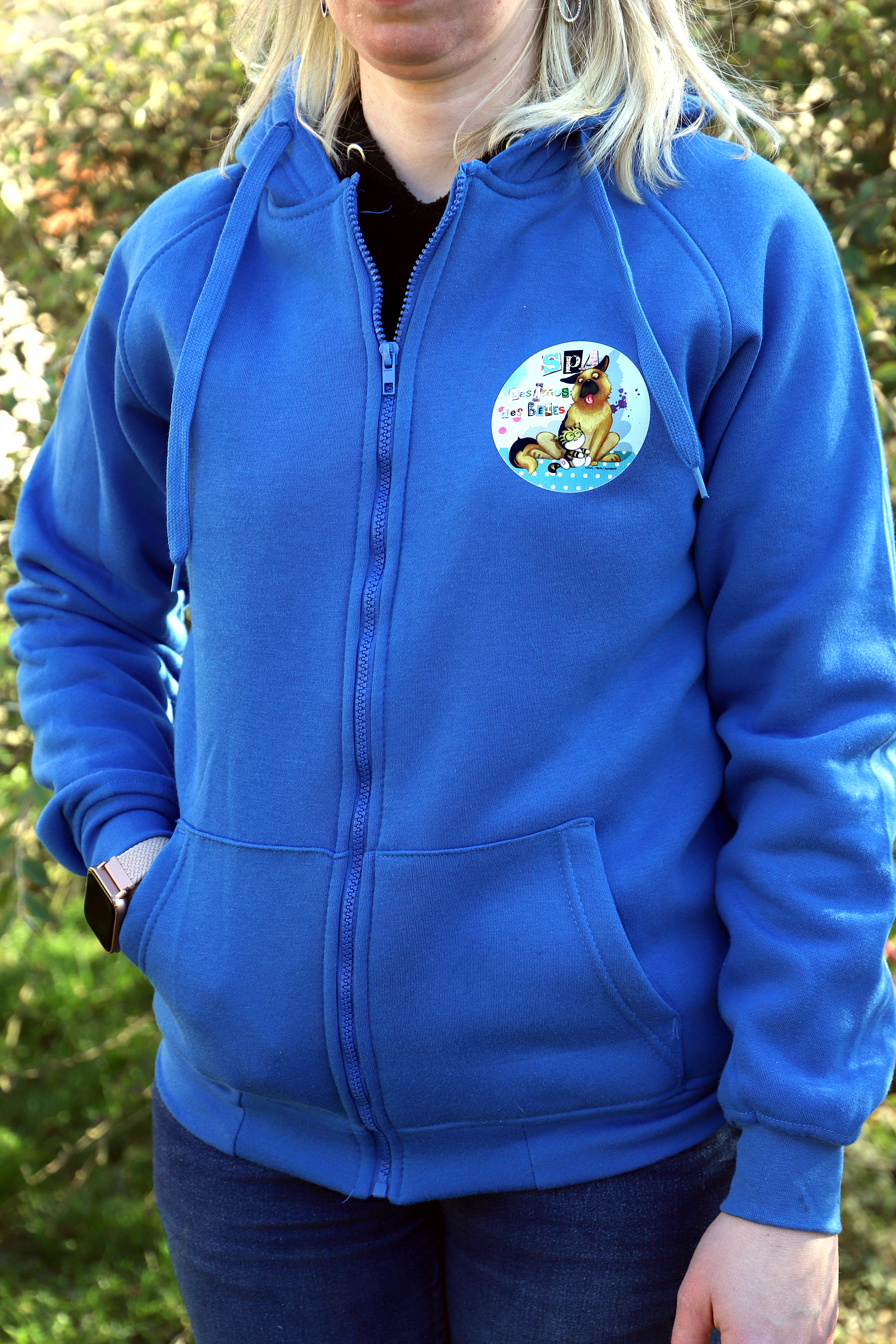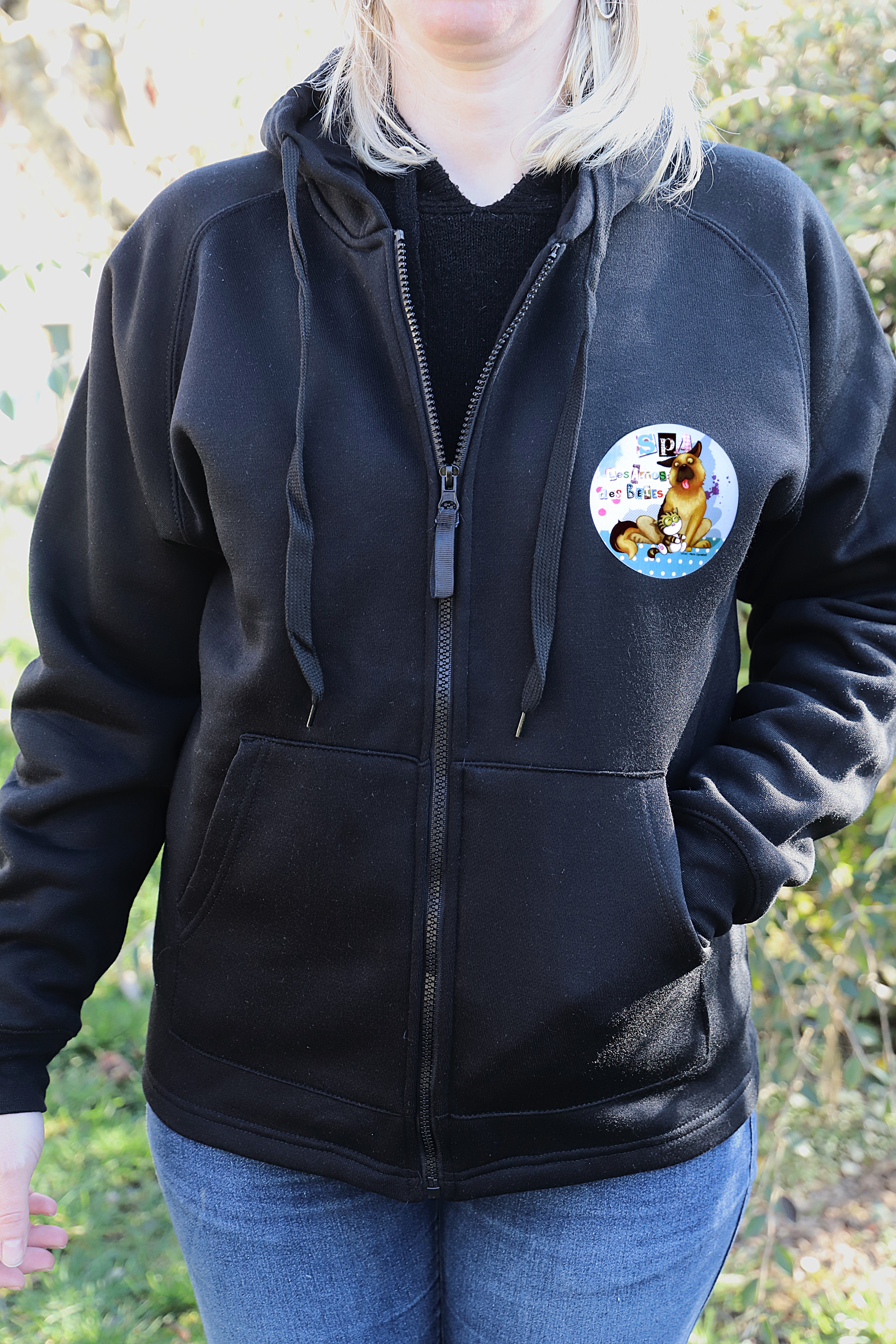 Nos sweats zippés à capuche et nos T-shirts sont en vente à l’accueil du refuge.